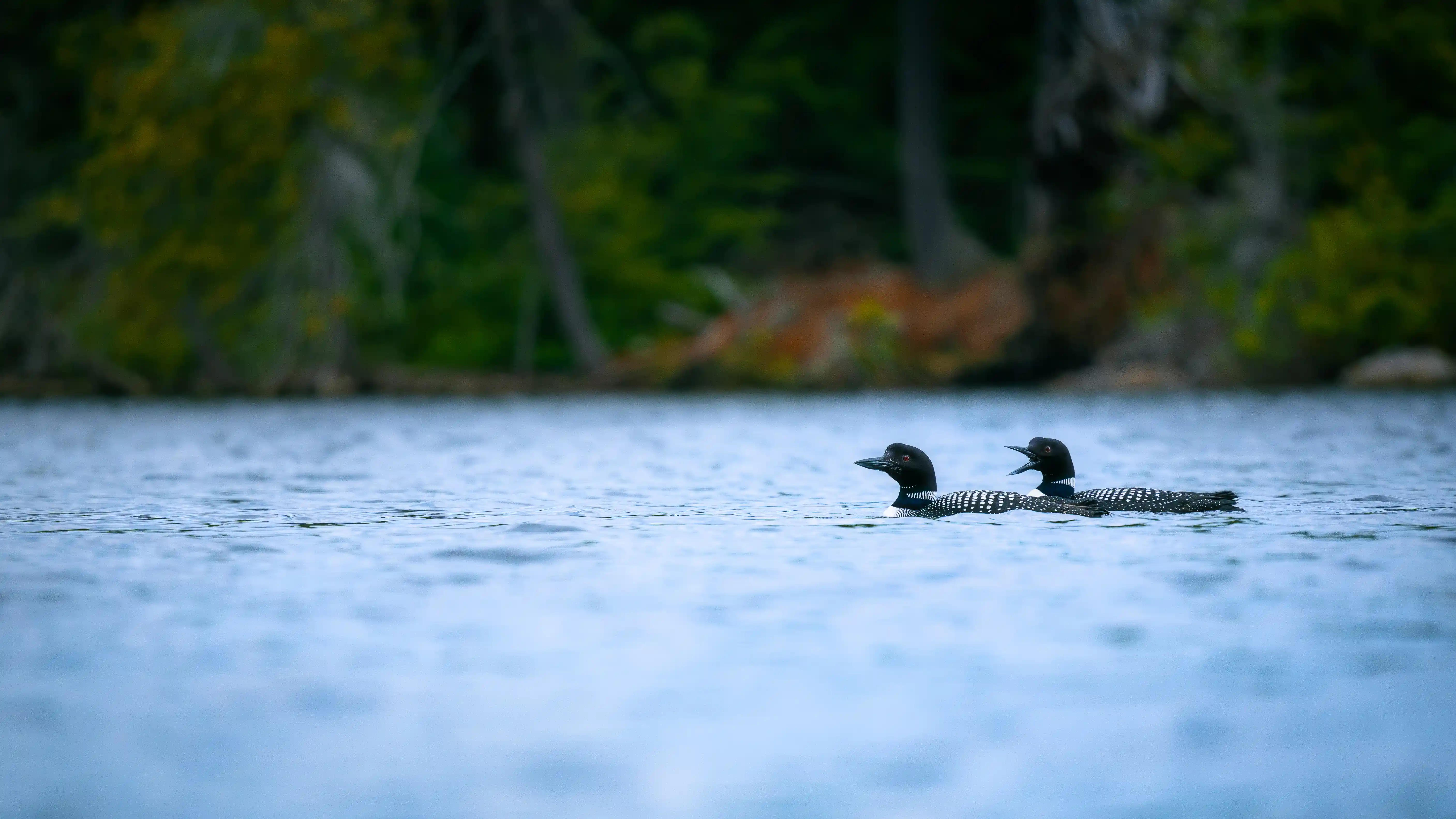 Photographing loons requires patience and a long lens. These images were made from a kayak on Kennisis Lake over several mornings and evenings, using the low angle of the water to produce the compressed, intimate perspective the photographs required.
