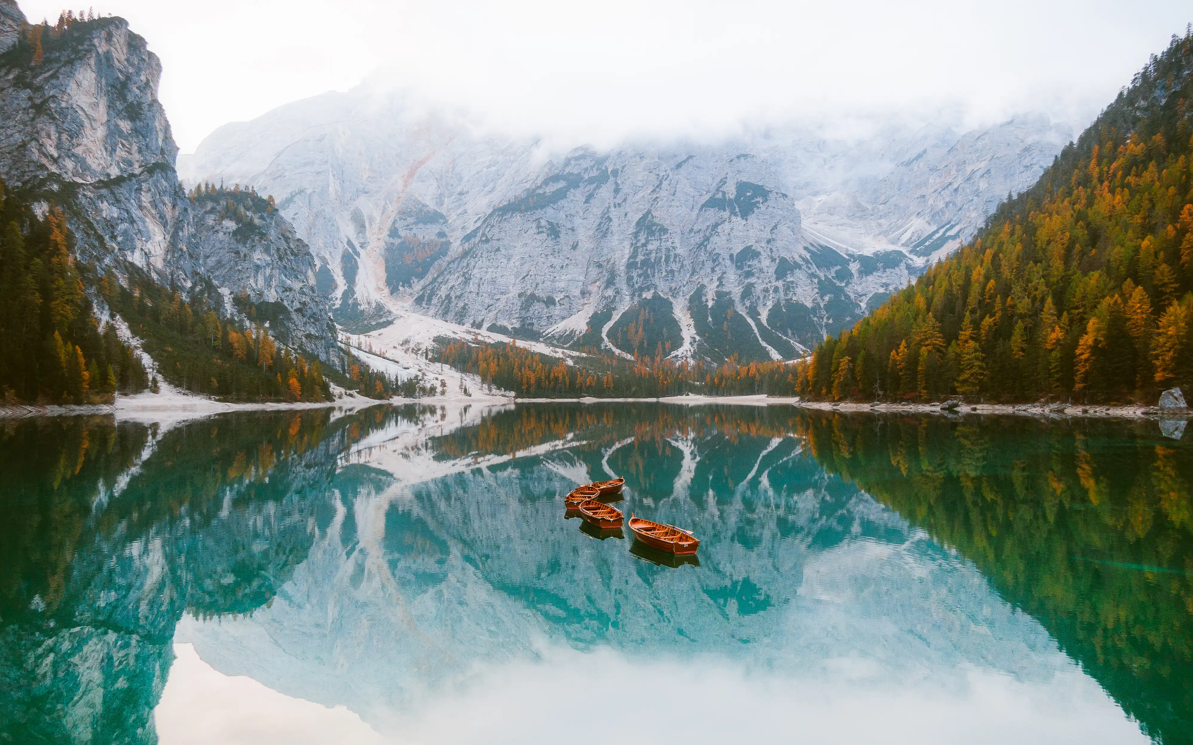 Lago di Braies is the largest natural lake in the Dolomites, spanning approximately 31 hectares with a maximum depth of 36 metres. It sits at 1,496 metres and is surrounded on three sides by the peaks of the Pragser Dolomites, creating a natural amphitheatre. The lake's remarkable colour is produced by fine mineral particles — primarily calcium carbonate and glacial sediment — remaining suspended in the water and scattering short-wavelength blue light. The lake's only inflow is the Braies stream, which is also its only outflow, keeping the water unusually clear.