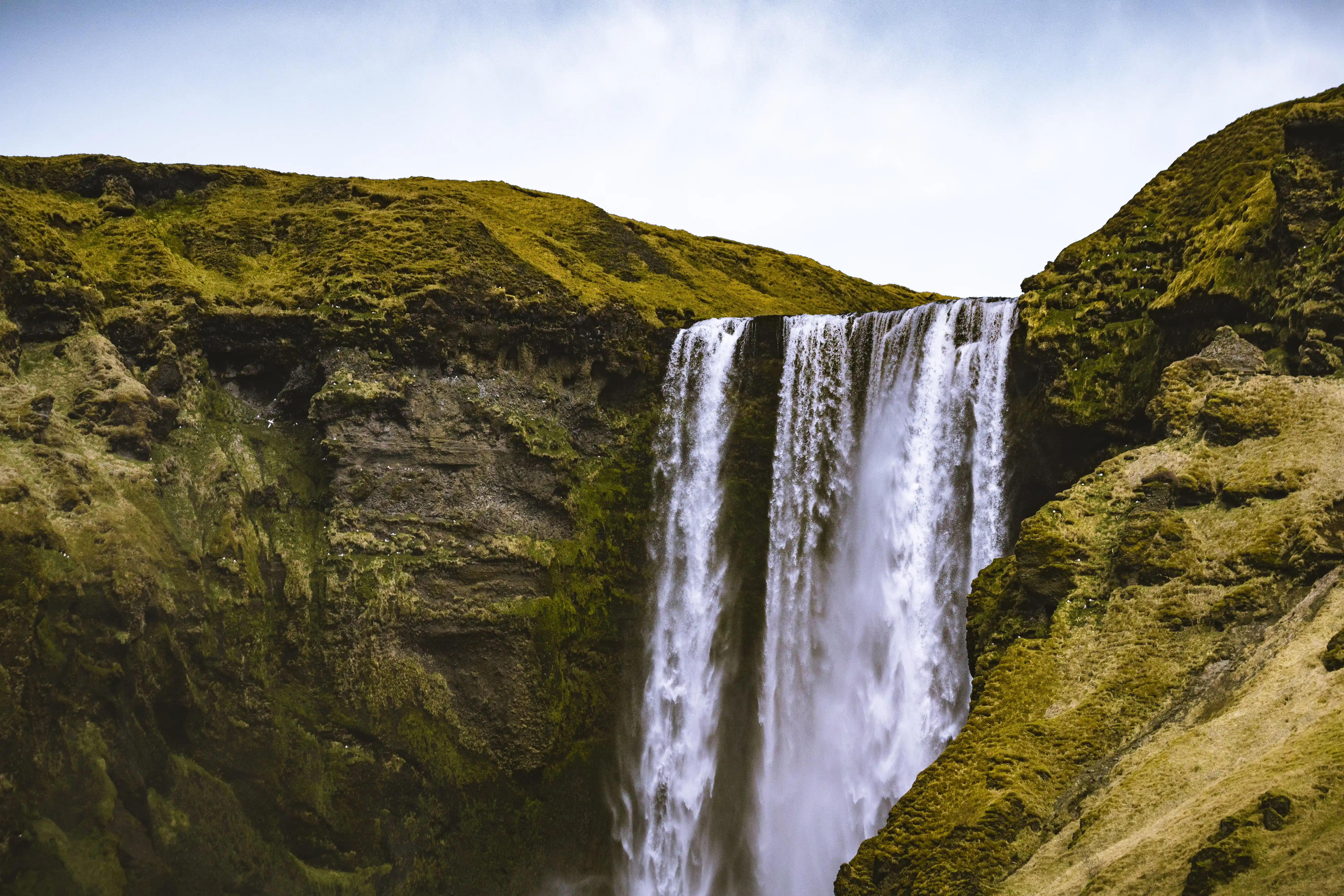 Skógafoss stands at the boundary between two contrasting landscapes. To the west, the valley of Þórsmörk is green, sheltered, and unusually verdant for Iceland. To the east and south, the land opens into broad black sand plains — outwash plains scoured clean by catastrophic glacial floods and now used primarily by the wind.