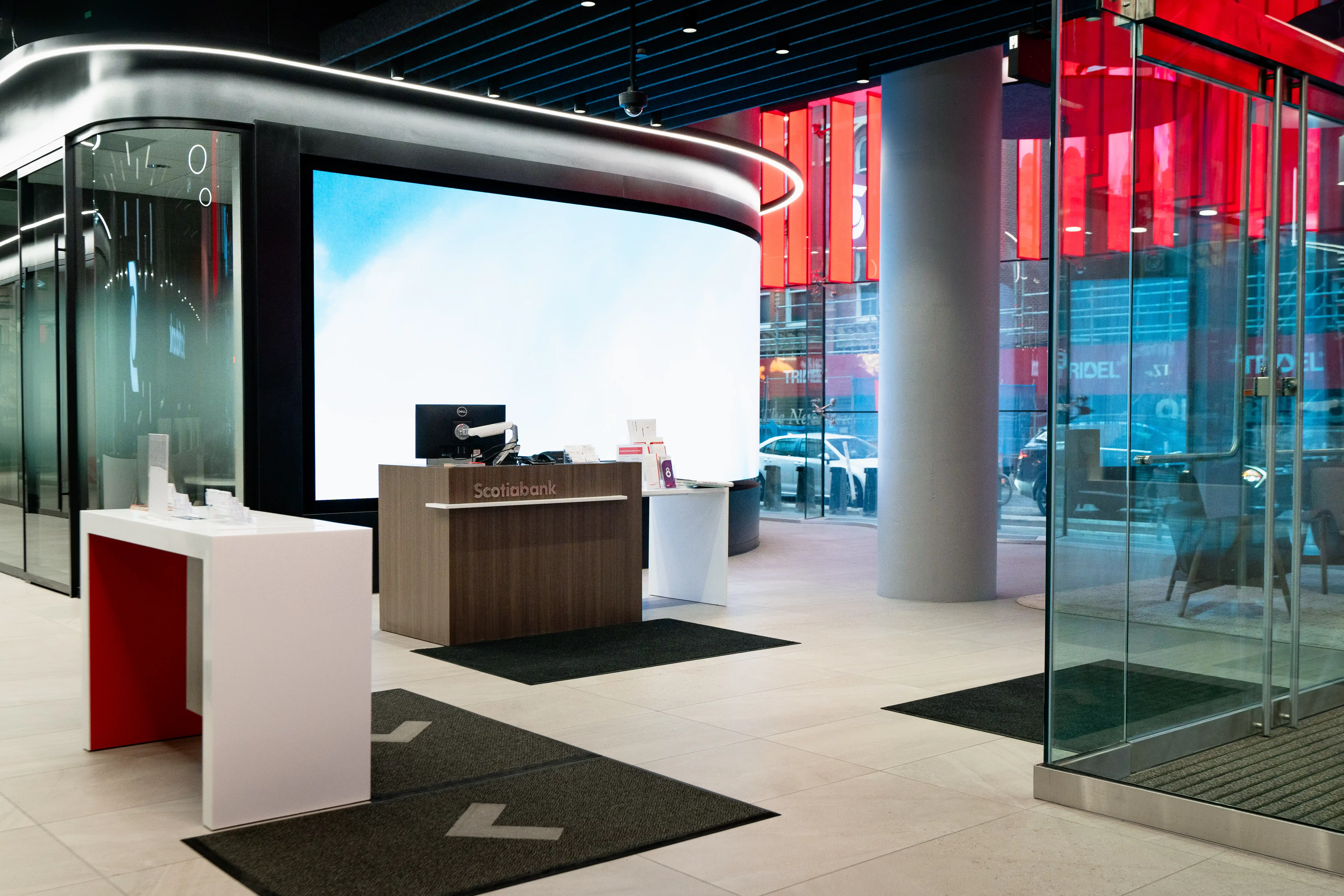 Scotiabank engaged us to produce launch photography for their new high-profile branch in Toronto's Yorkville neighbourhood — positioned at the premium Bloor and Yonge intersection. The location was designed to reflect the bank's elevated presence and cater to an upscale urban audience, and the imagery needed to match that ambition.