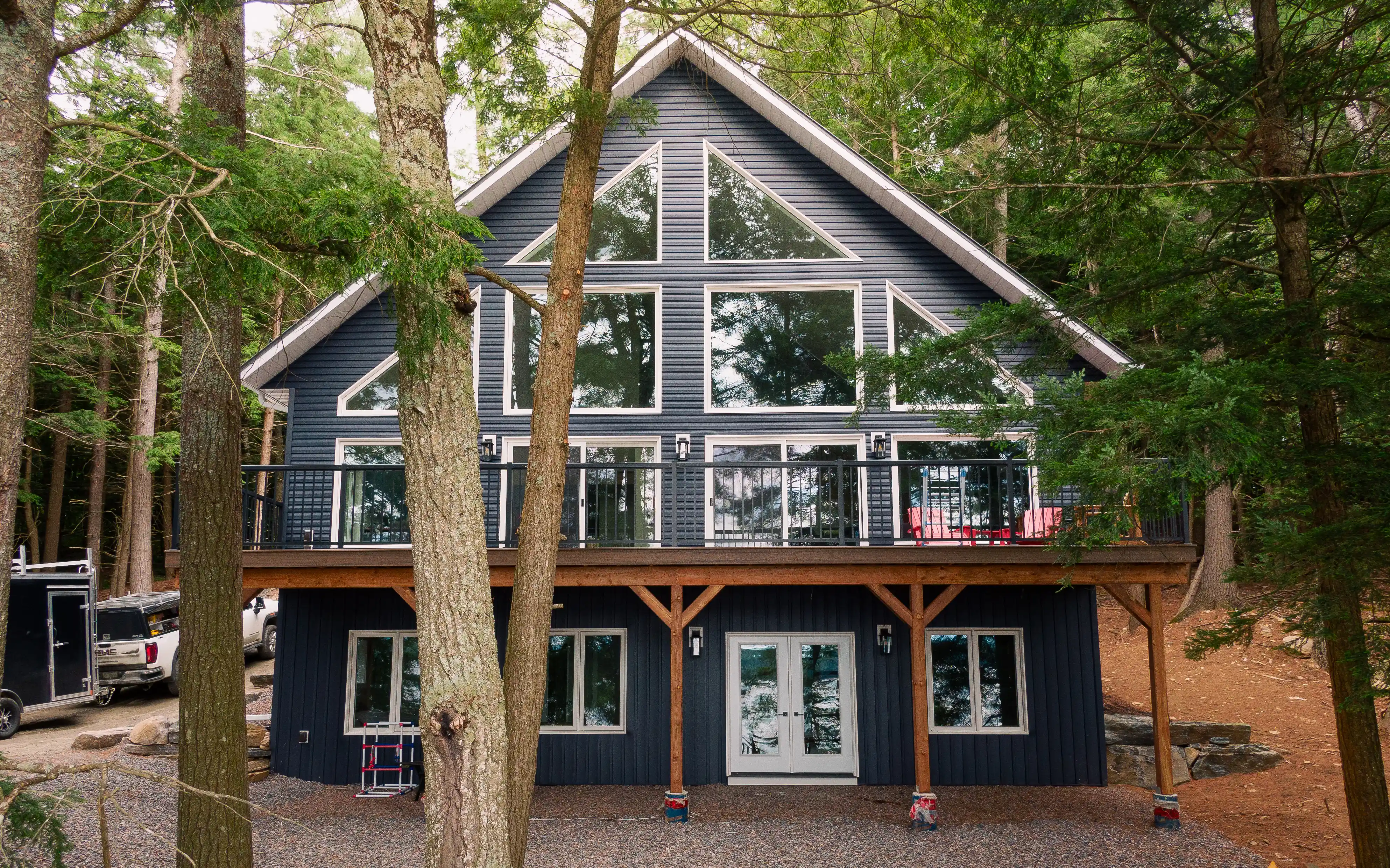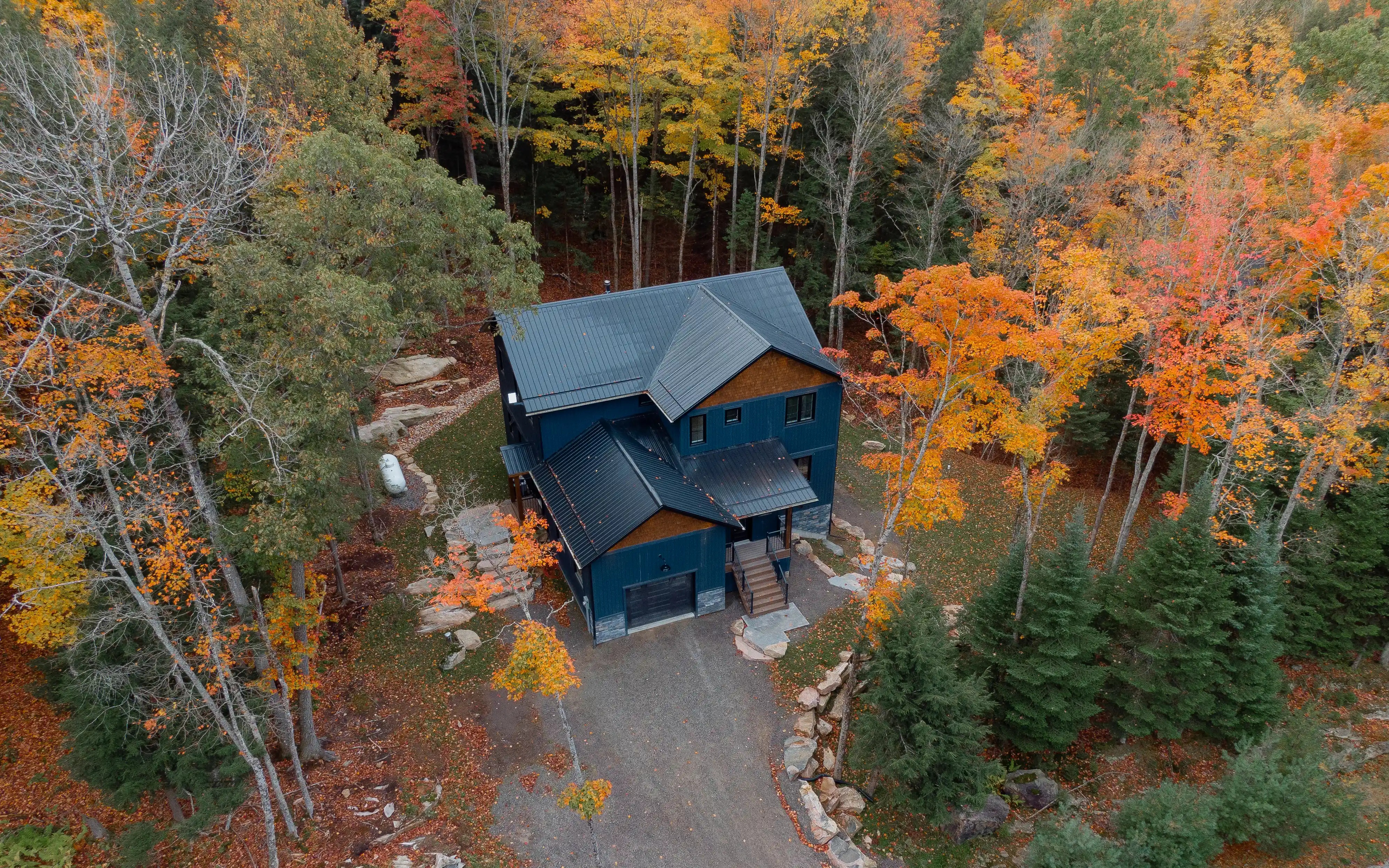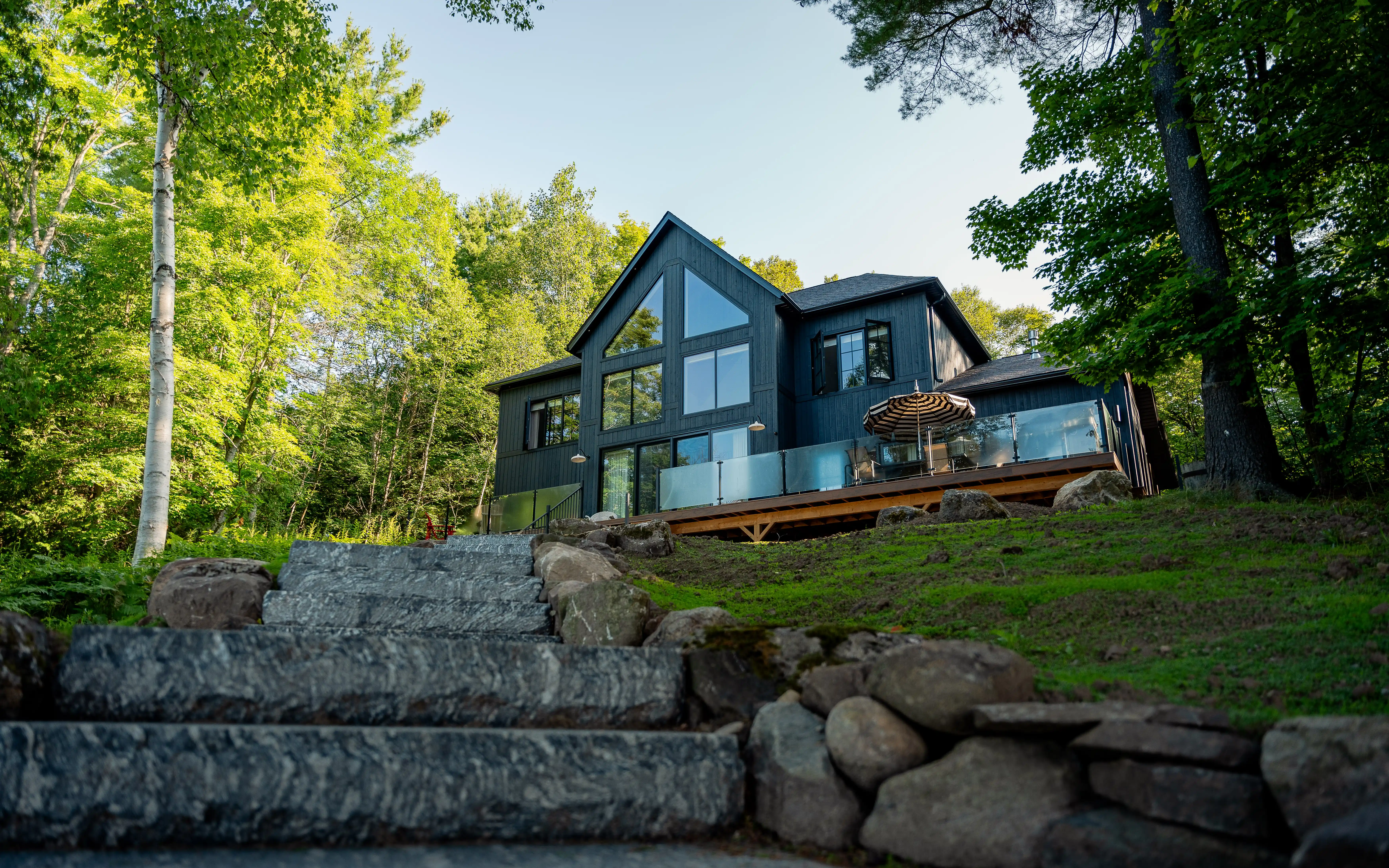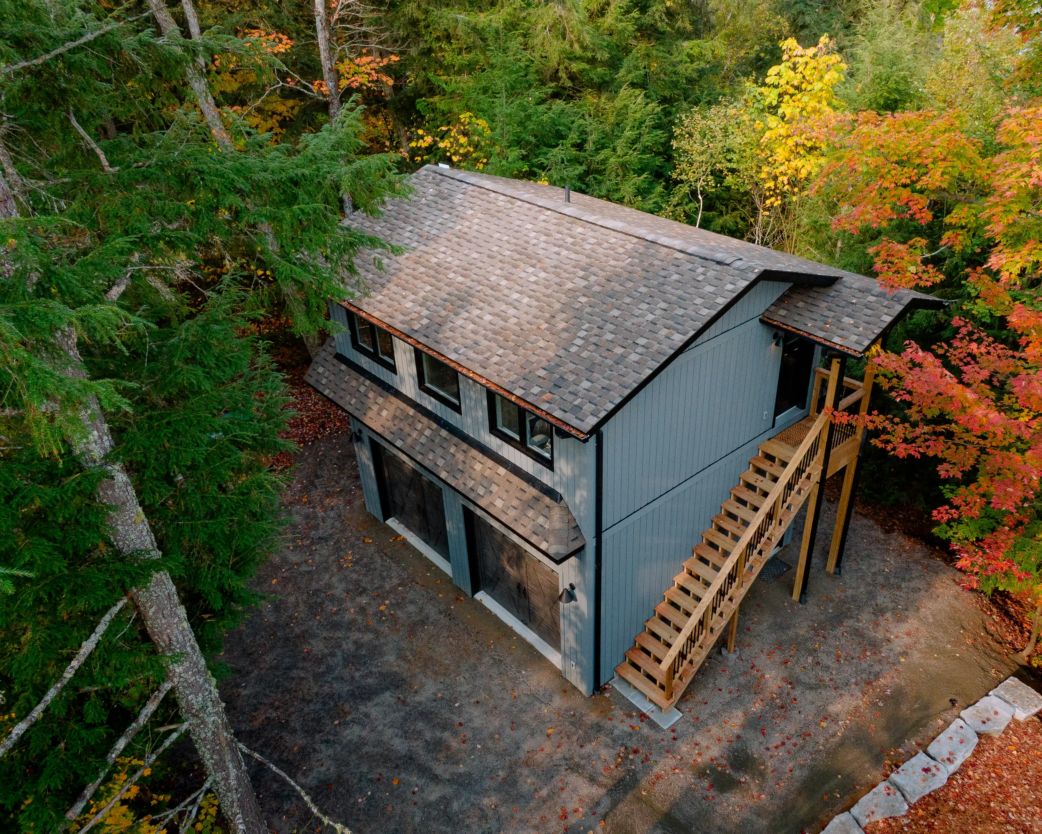 Woodlands Custom Structures builds custom homes and cottages across Northern Ontario — properties defined by their setting, their materials, and the quality of their construction. We partnered with them to document their work across five builds, producing ground-based photo and video that captures both the design detail and the landscape each property sits within.